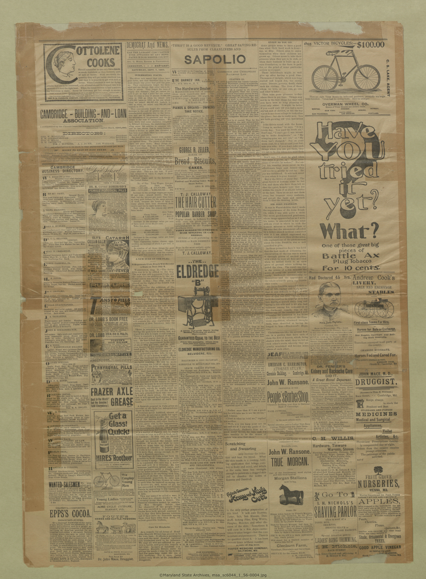 Maryland State Archives Dorchester County Historical Society Newspaper Collection MSA SC 6044 The Democrat and News msa_sc6044_1_56-0004 Enlarge and print image (14M)      |