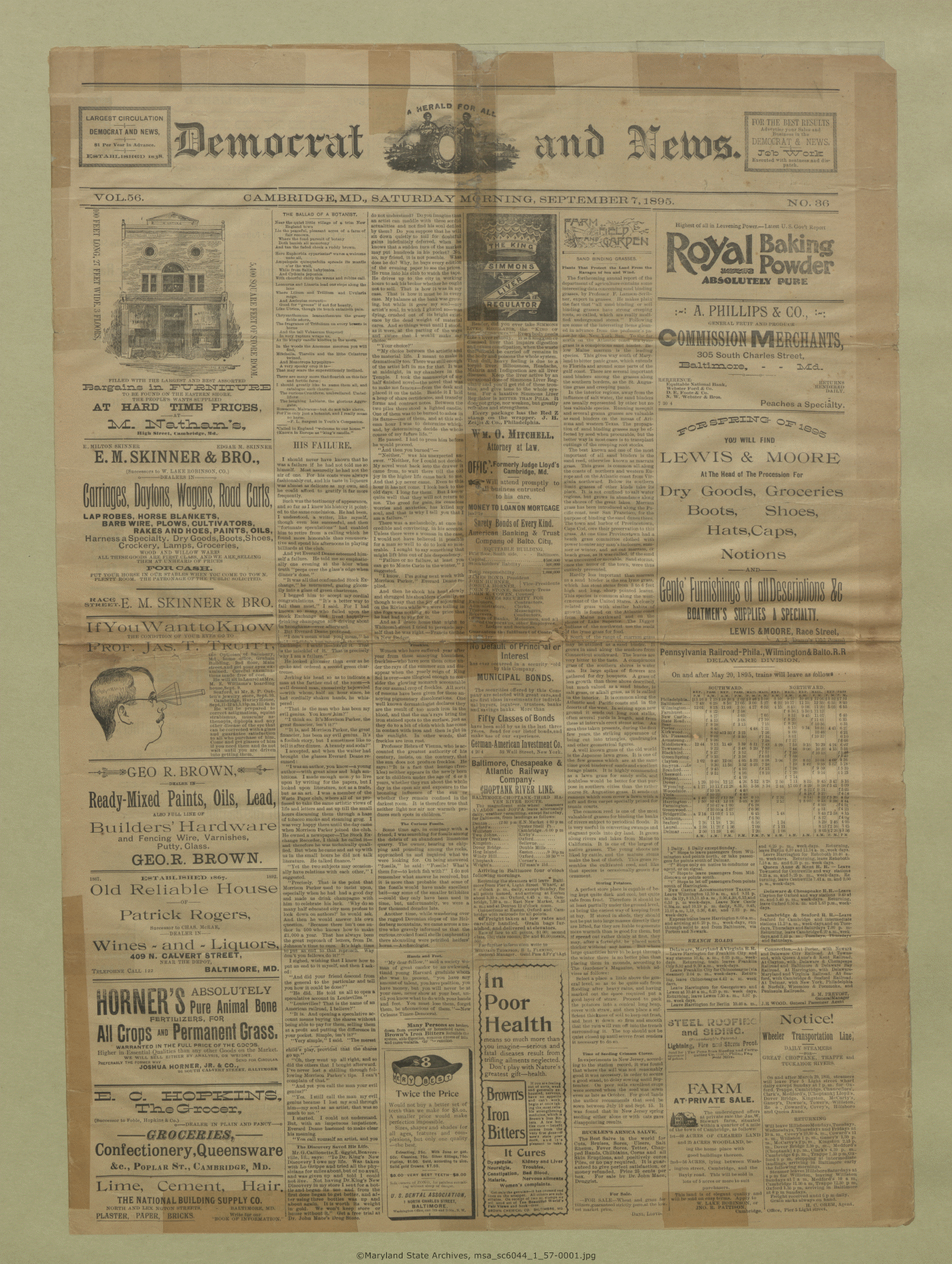 Maryland State Archives Dorchester County Historical Society Newspaper Collection MSA SC 6044 The Democrat and News msa_sc6044_1_57-0001 Enlarge and print image (14M)      |