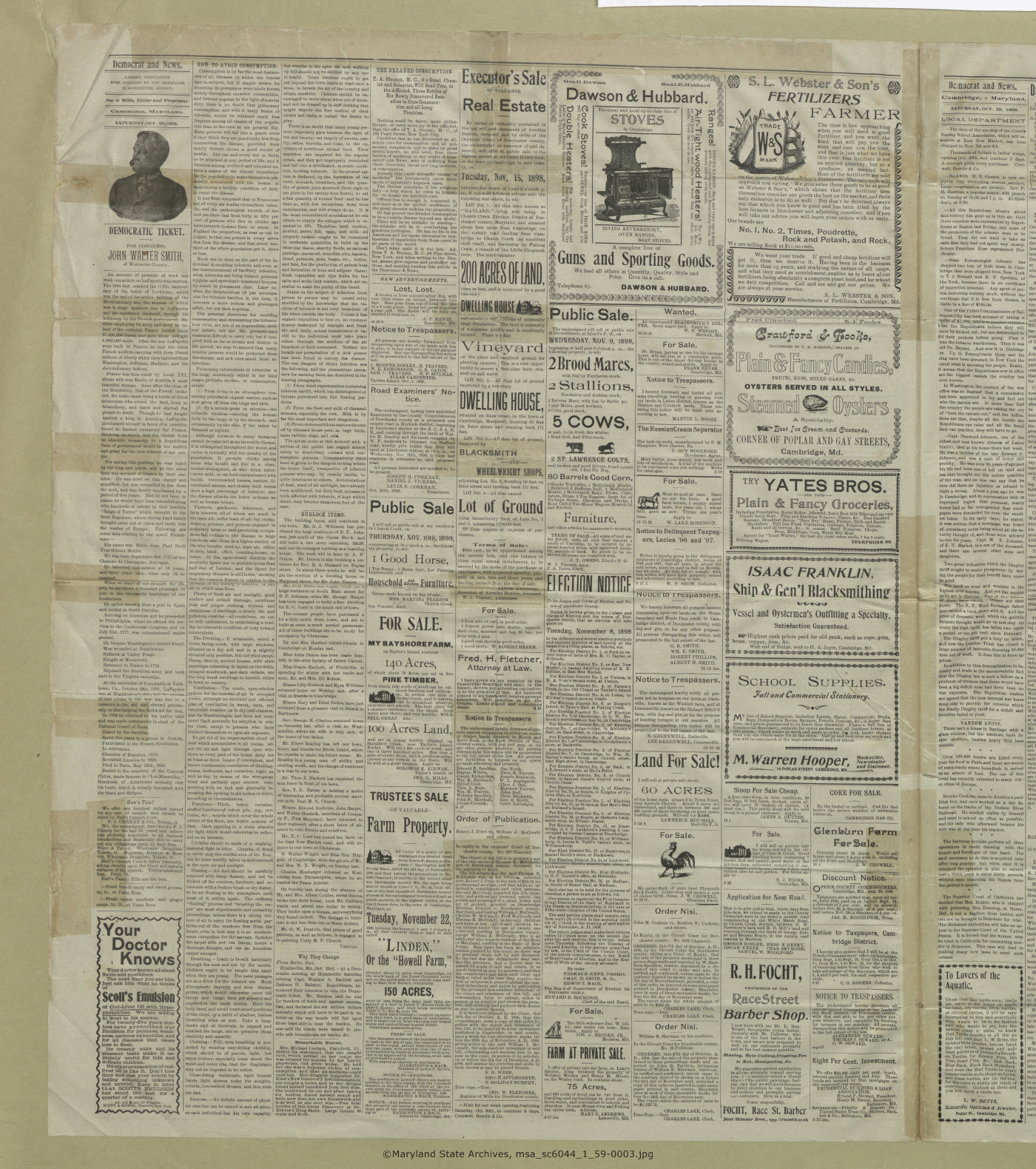 Maryland State Archives Dorchester County Historical Society Newspaper Collection MSA SC 6044 The Democrat and News msa_sc6044_1_59-0003 Enlarge and print image (7M)      |