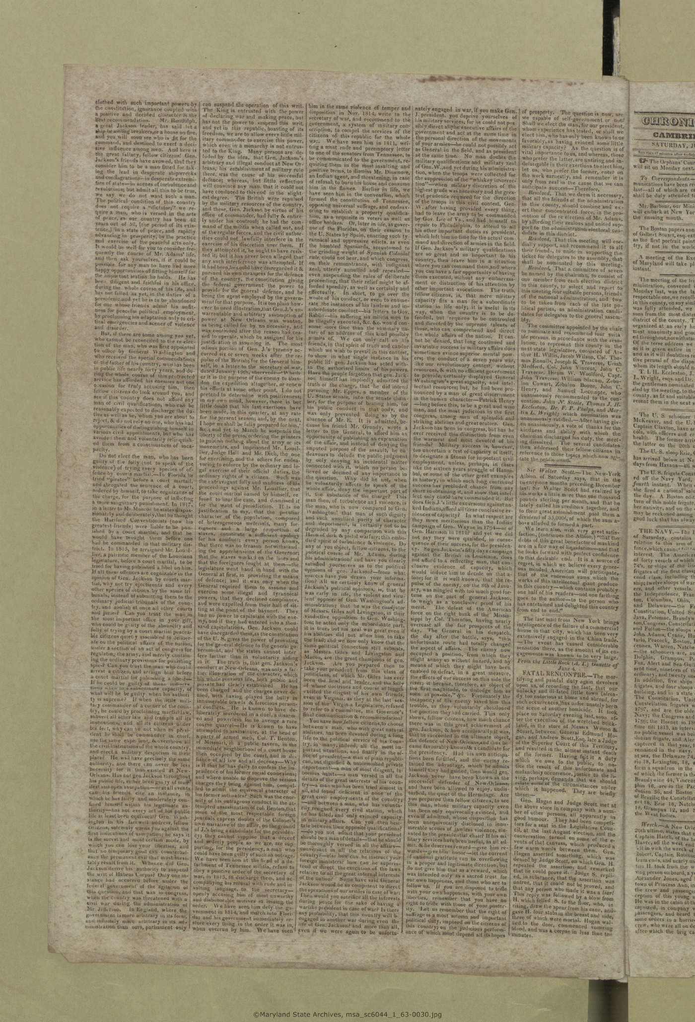 Maryland State Archives Dorchester County Historical Society Newspaper Collection MSA SC 6044 The Cambridge Chronicle, The Caroline Intelligencer, and The Cambridge Democrat msa_sc6044_1_63-0030