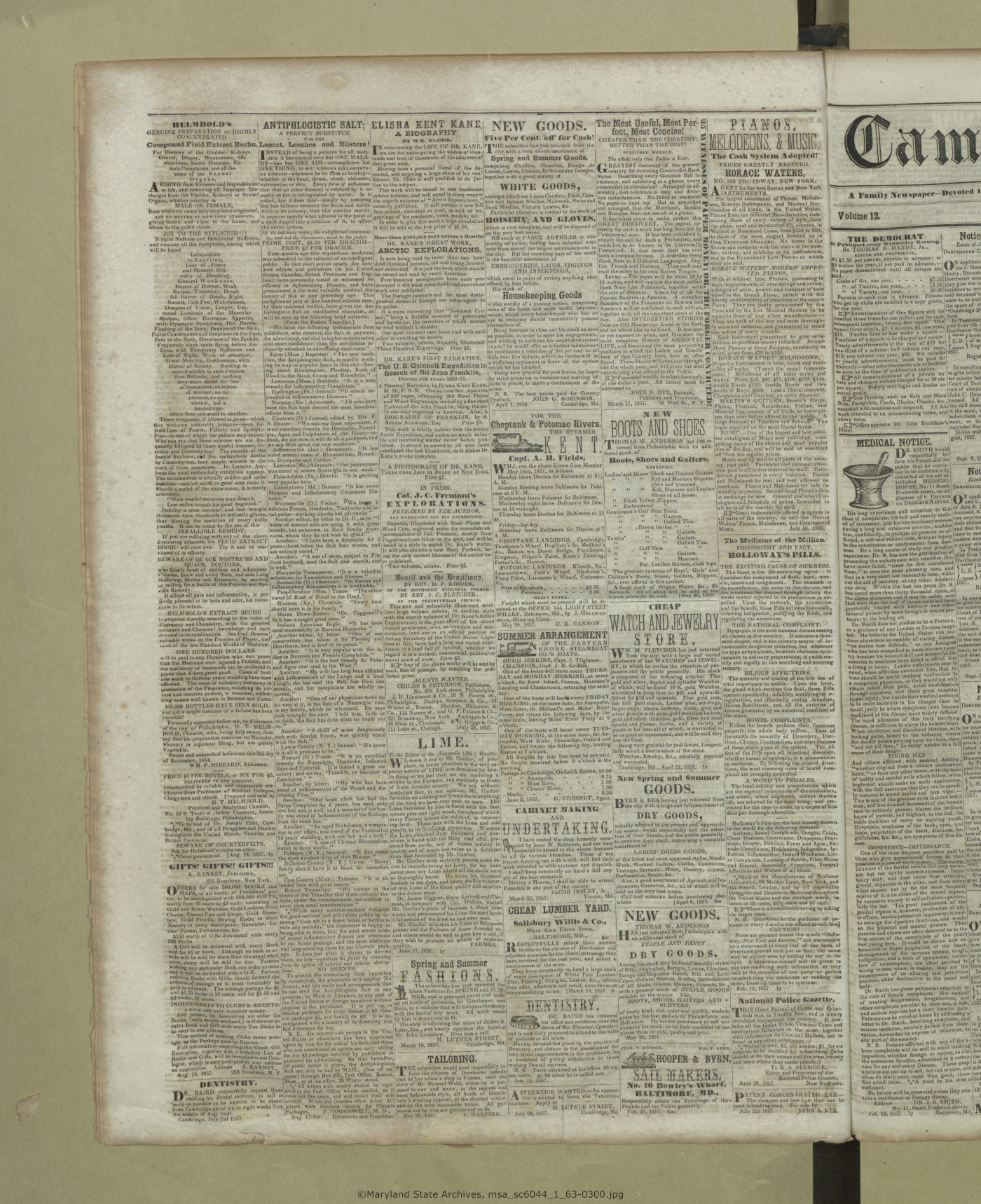 Maryland State Archives Dorchester County Historical Society Newspaper Collection MSA SC 6044 The Cambridge Chronicle, The Caroline Intelligencer, and The Cambridge Democrat msa_sc6044_1_63-0300