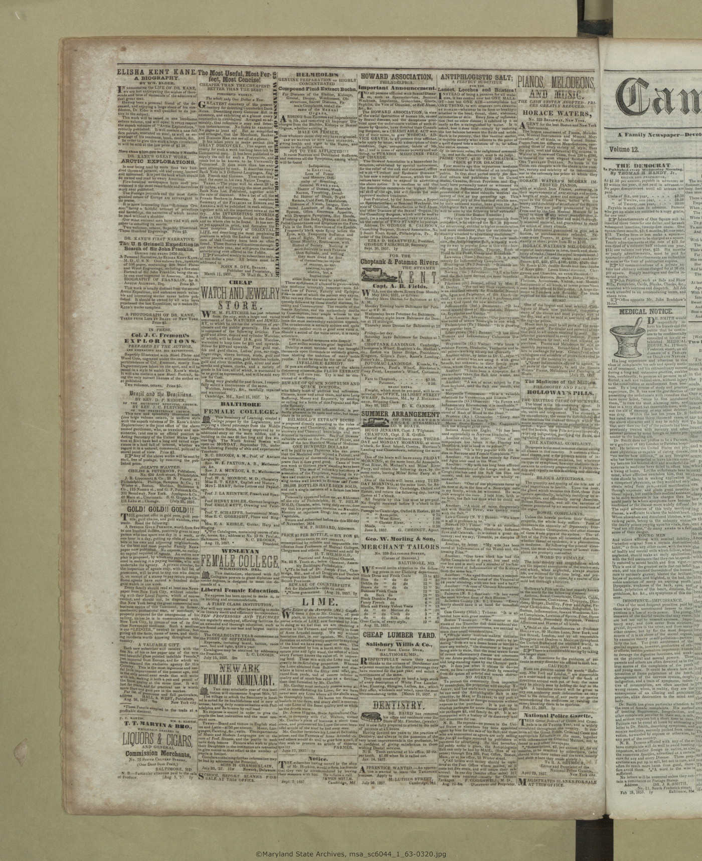 Maryland State Archives Dorchester County Historical Society Newspaper Collection MSA SC 6044 The Cambridge Chronicle, The Caroline Intelligencer, and The Cambridge Democrat msa_sc6044_1_63-0320