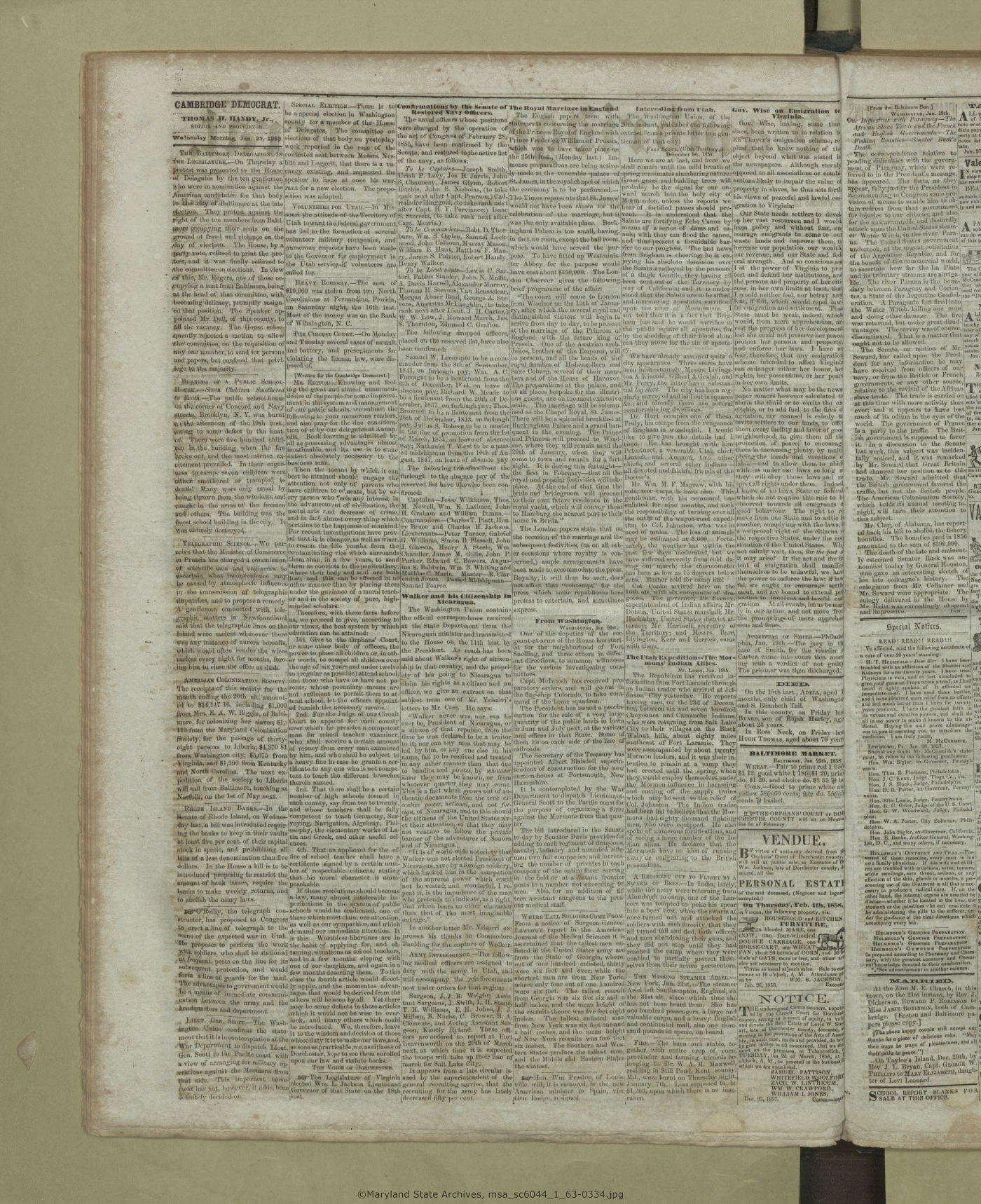 Maryland State Archives Dorchester County Historical Society Newspaper Collection MSA SC 6044 The Cambridge Chronicle, The Caroline Intelligencer, and The Cambridge Democrat msa_sc6044_1_63-0334