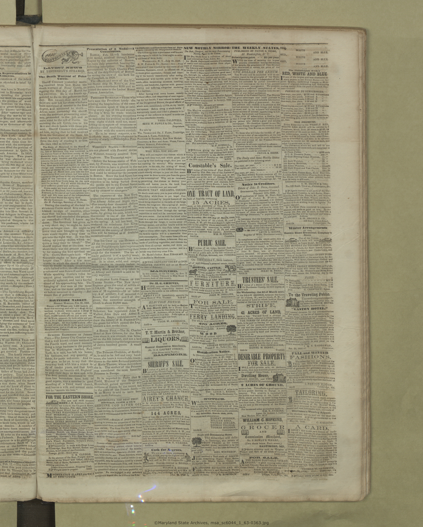 Maryland State Archives Dorchester County Historical Society Newspaper Collection MSA SC 6044 The Cambridge Chronicle, The Caroline Intelligencer, and The Cambridge Democrat msa_sc6044_1_63-0363