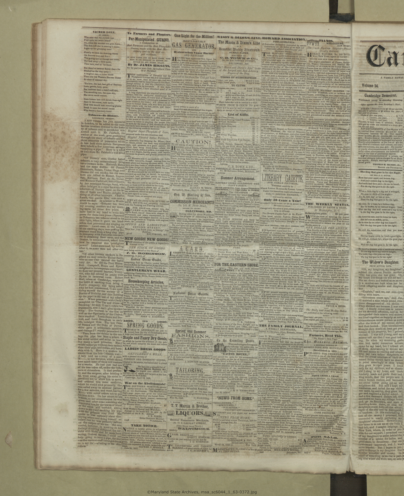 Maryland State Archives Dorchester County Historical Society Newspaper Collection MSA SC 6044 The Cambridge Chronicle, The Caroline Intelligencer, and The Cambridge Democrat msa_sc6044_1_63-0372