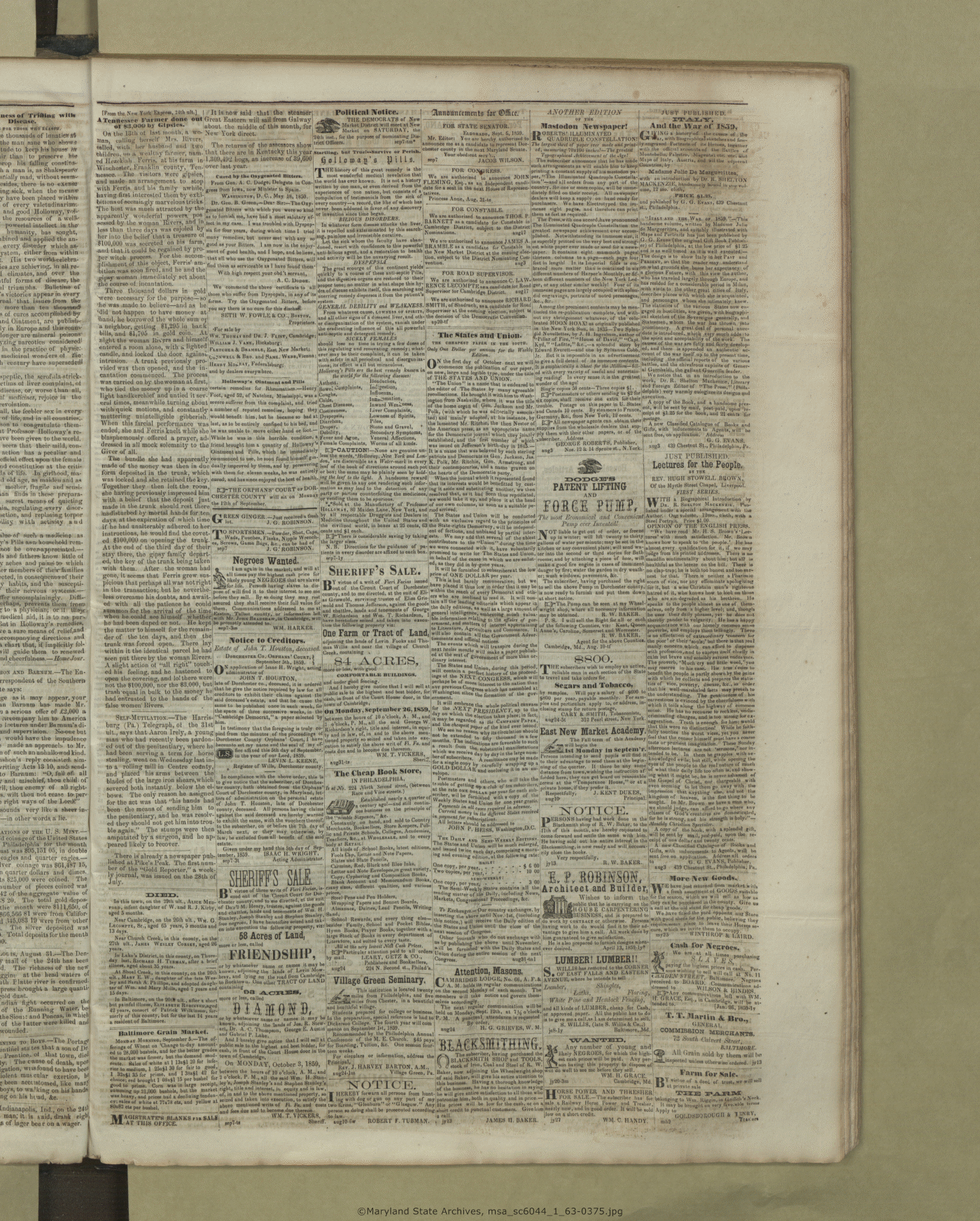 Maryland State Archives Dorchester County Historical Society Newspaper Collection MSA SC 6044 The Cambridge Chronicle, The Caroline Intelligencer, and The Cambridge Democrat msa_sc6044_1_63-0375