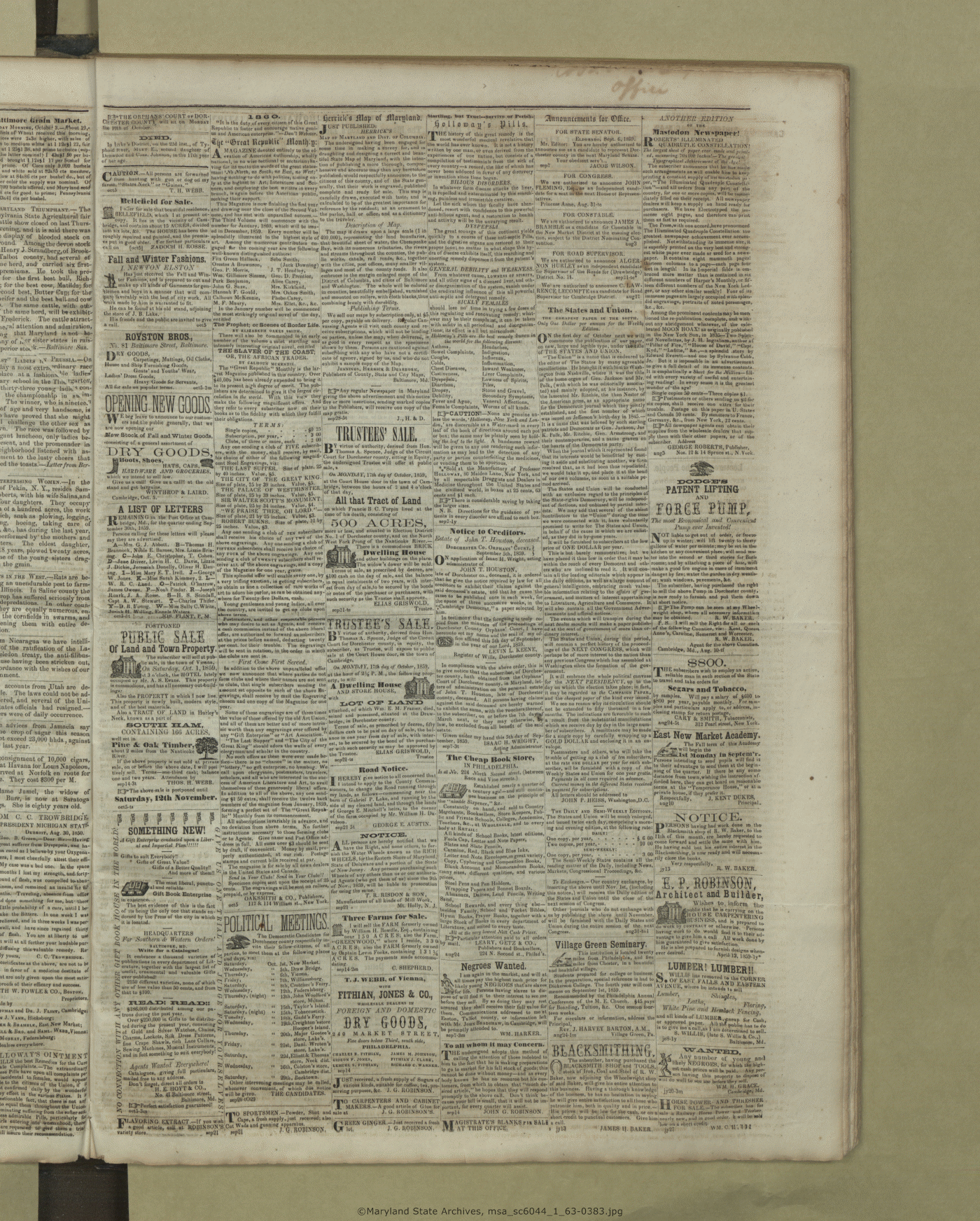 Maryland State Archives Dorchester County Historical Society Newspaper Collection MSA SC 6044 The Cambridge Chronicle, The Caroline Intelligencer, and The Cambridge Democrat msa_sc6044_1_63-0383