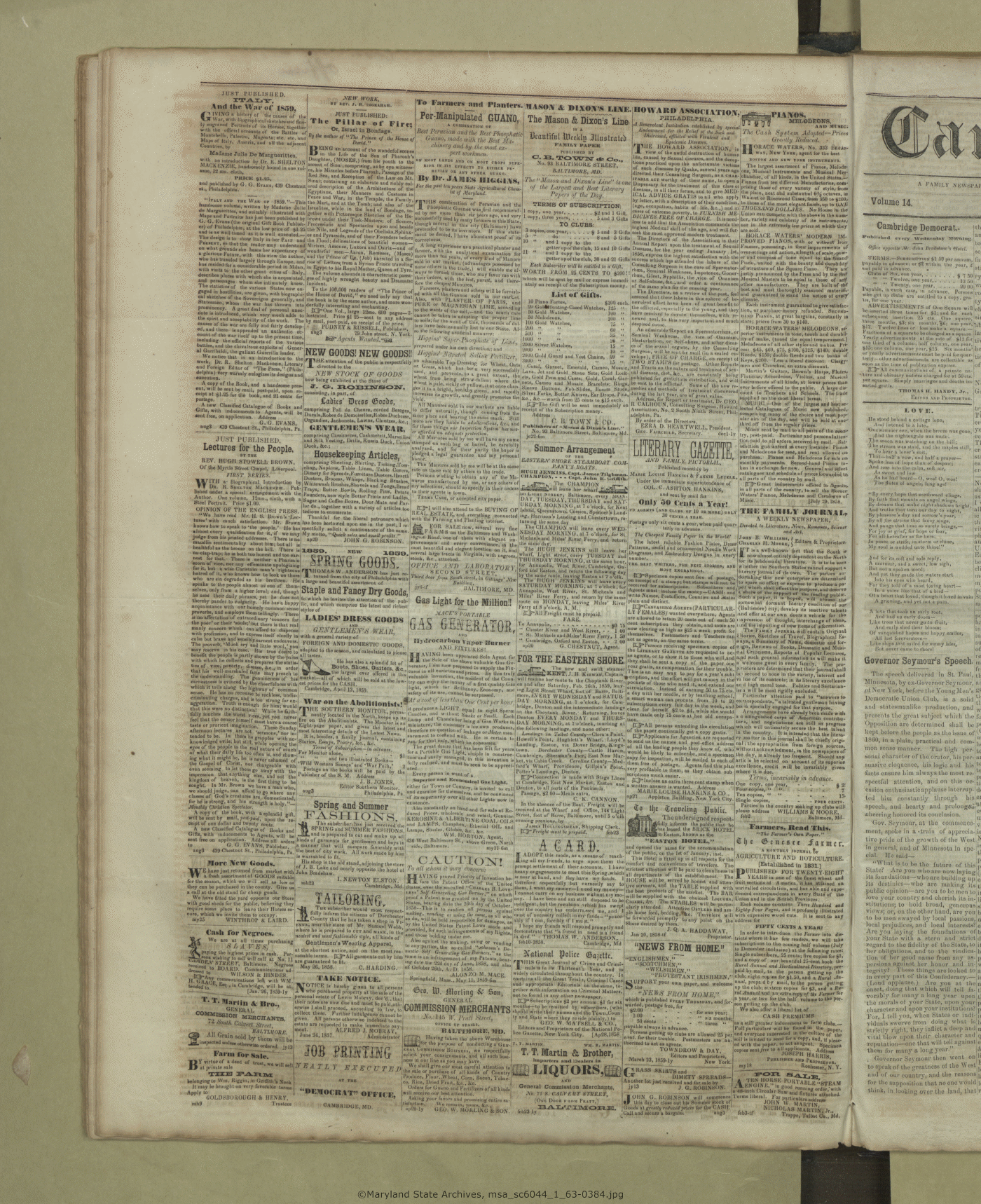 Maryland State Archives Dorchester County Historical Society Newspaper Collection MSA SC 6044 The Cambridge Chronicle, The Caroline Intelligencer, and The Cambridge Democrat msa_sc6044_1_63-0384