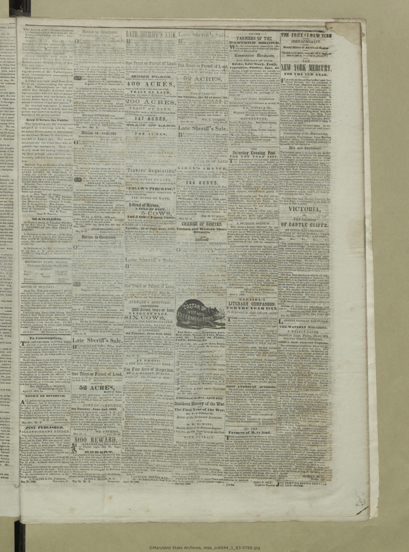 Maryland State Archives Dorchester County Historical Society Newspaper Collection MSA SC 6044 The Cambridge Chronicle, The Caroline Intelligencer, and The Cambridge Democrat msa_sc6044_1_63-0768