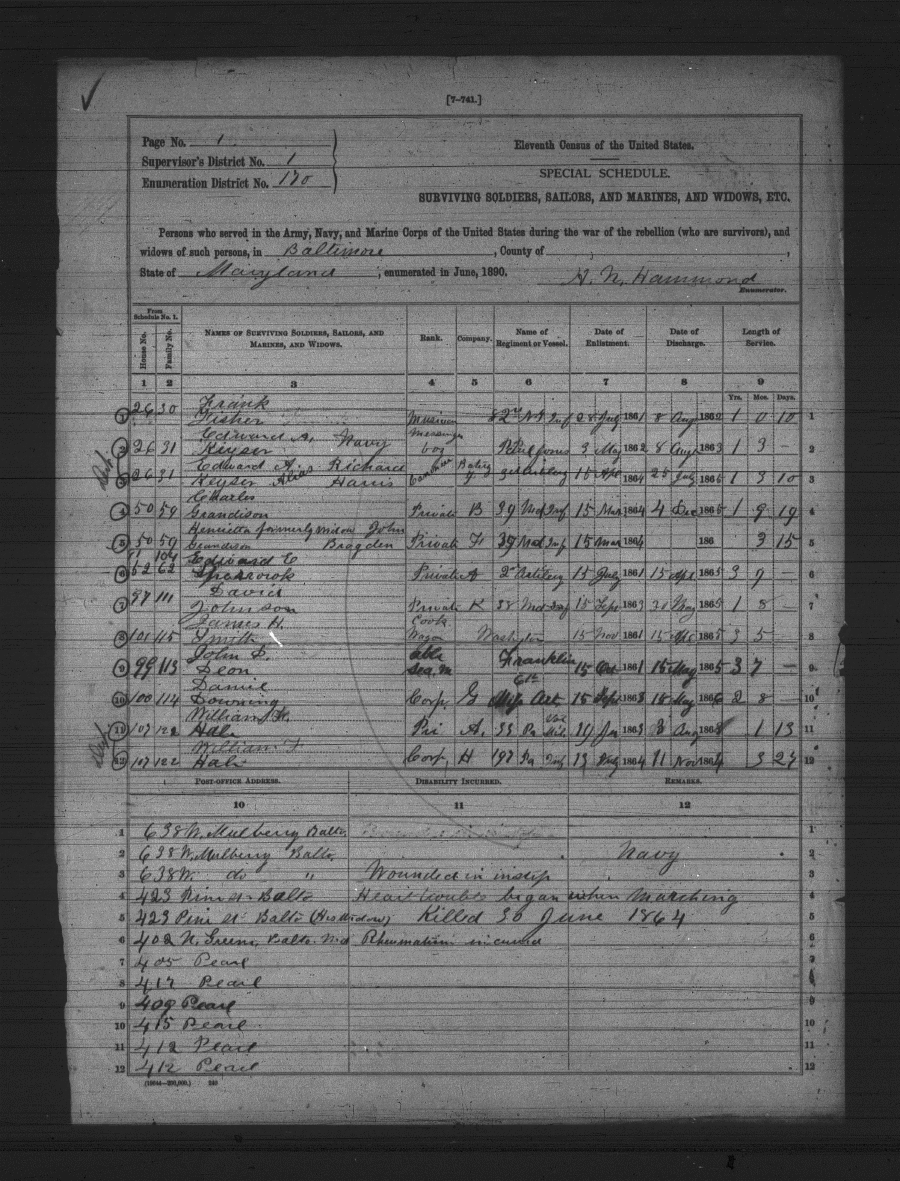 Maryland State Archives U. S. Census Union Veterans and Widows msa_sm61_351_scm26-0382 Enlarge and print image (1M)      |