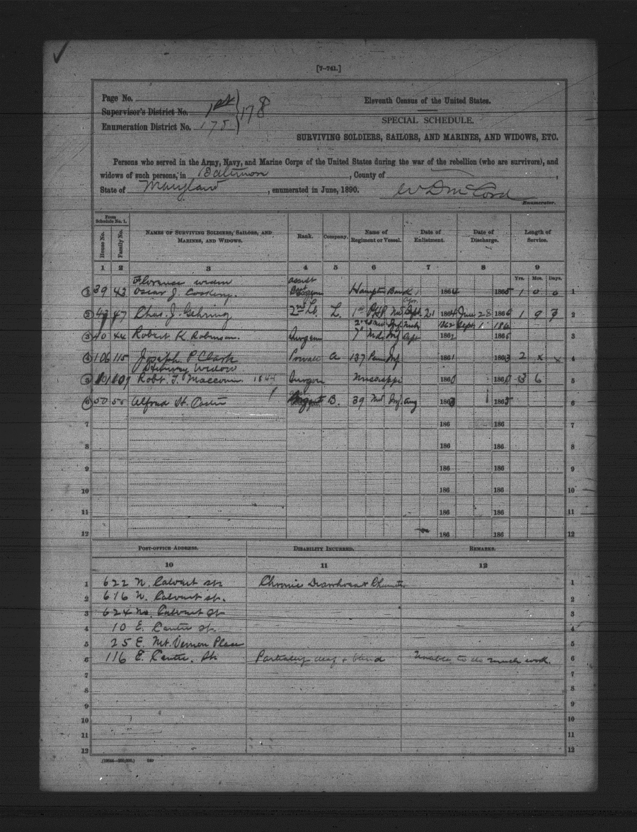 Maryland State Archives U. S. Census Union Veterans and Widows msa_sm61_351_scm26-0398 Enlarge and print image (1M)      |