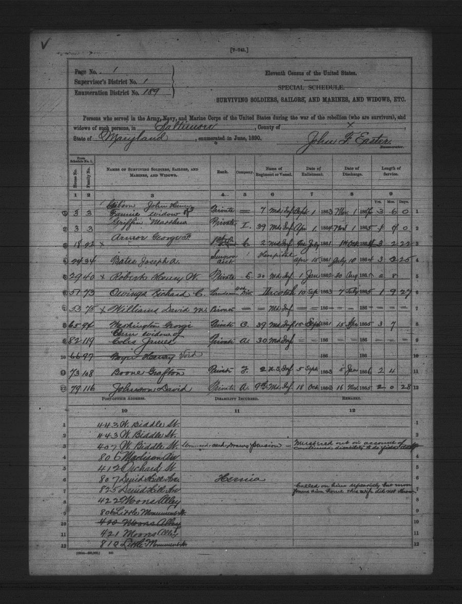 Maryland State Archives U. S. Census Union Veterans and Widows msa_sm61_351_scm26-0420 Enlarge and print image (1M)      |