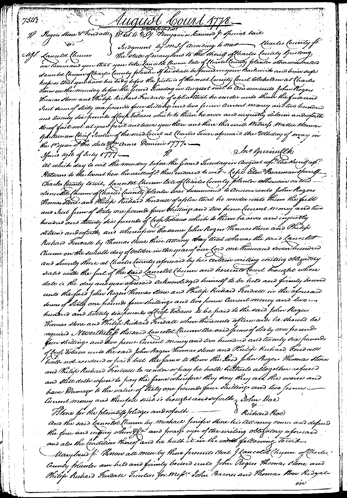Charles County Court Records 1774-1778; 1788-1780 MSA SC 5458-12-3666 cr34670-0446 Enlarge and print image (225K) << PREVIOUS NEXT >> |