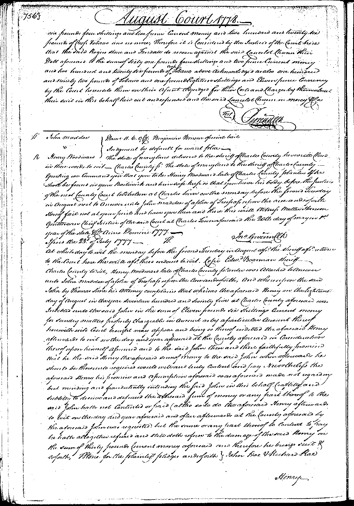 Charles County Court Records 1774-1778; 1788-1780 MSA SC 5458-12-3666 cr34670-0450 Enlarge and print image (182K) << PREVIOUS NEXT >> |