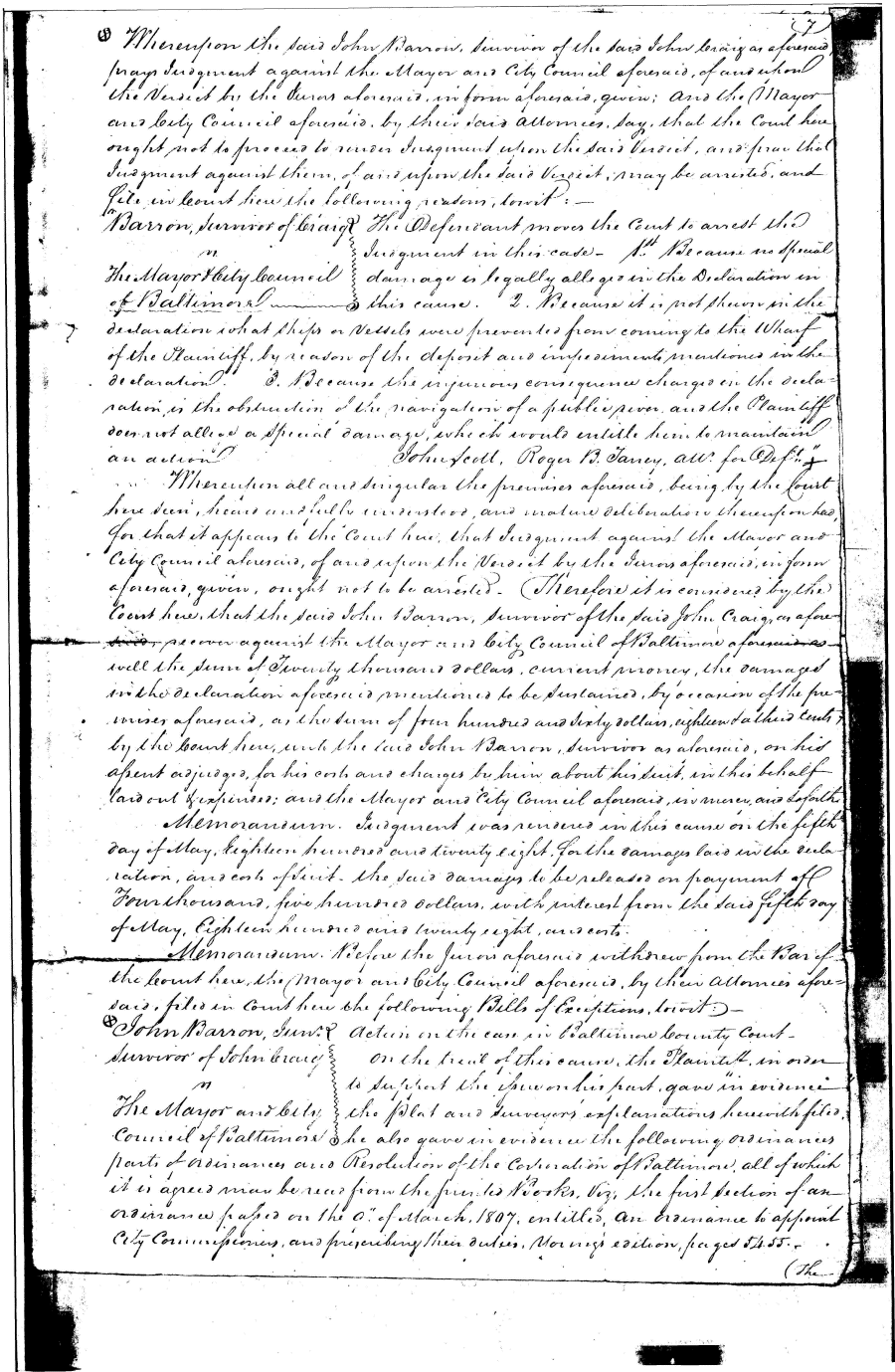 Papenfuse: Research Notes and Documents for Barron v Baltimore, 32 U. S. 243 barron-0014 Enlarge and print image (1M) << PREVIOUS NEXT >> |