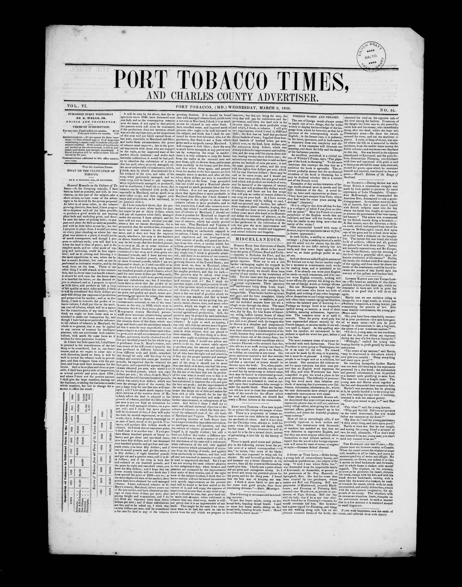 Port Tobacco Times, and Charles County Advertiser Collection MSA SC 3464 msa_scm6819-0030 Enlarge and print image (3M)      |