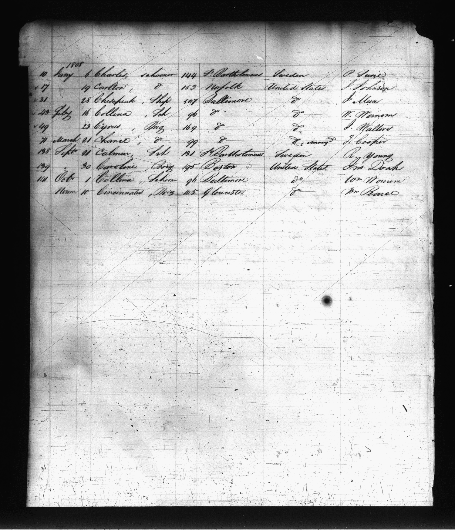 National Archives Bureau of Customs, Record Group 36, microfilm T-257, Roll No. 1 Baltimore Entrances and Clearances, 1788-1824 mdsa_scm13216-0253 Enlarge and print image (2M)      |