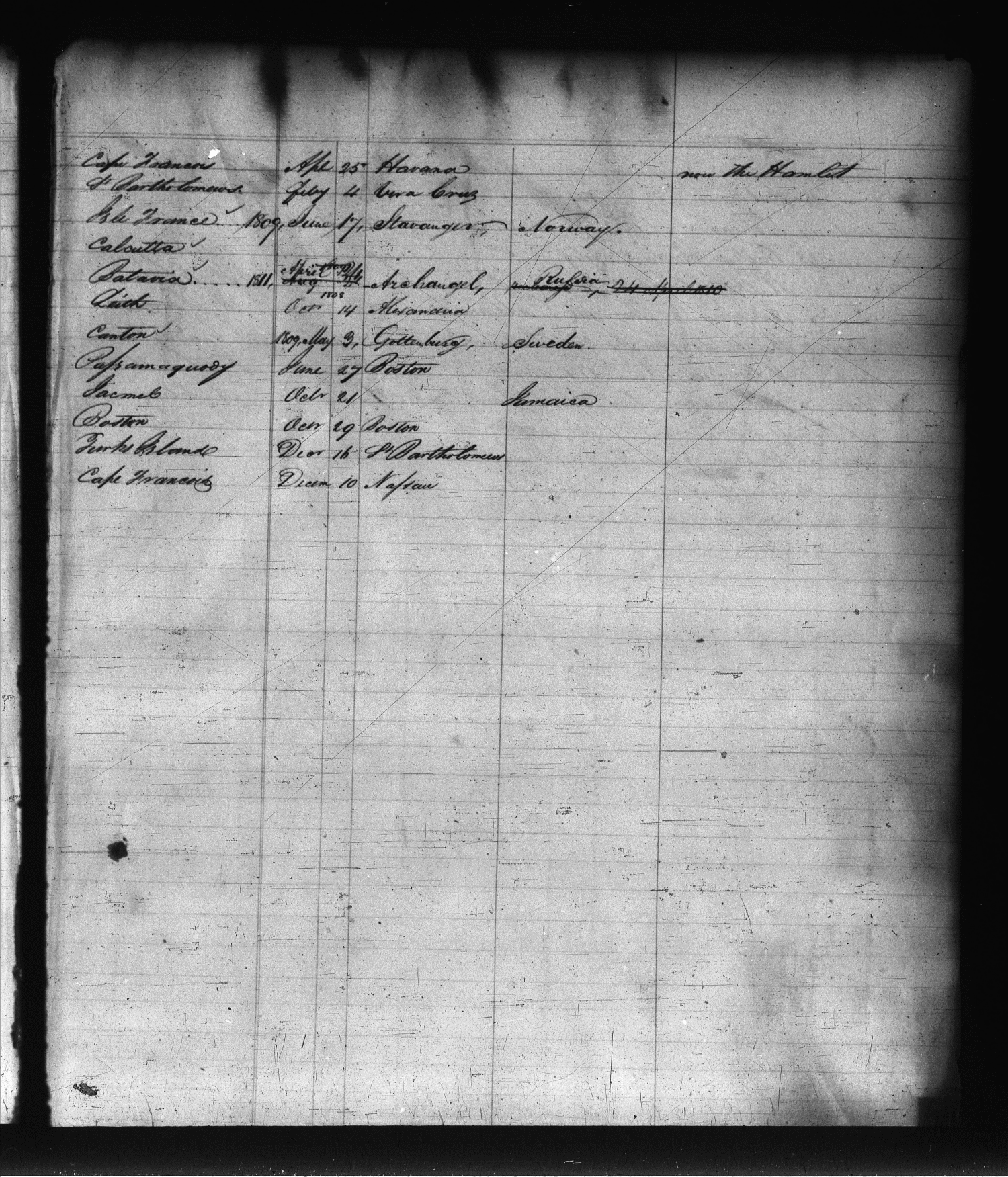National Archives Bureau of Customs, Record Group 36, microfilm T-257, Roll No. 1 Baltimore Entrances and Clearances, 1788-1824 mdsa_scm13216-0287 Enlarge and print image (2M)      |